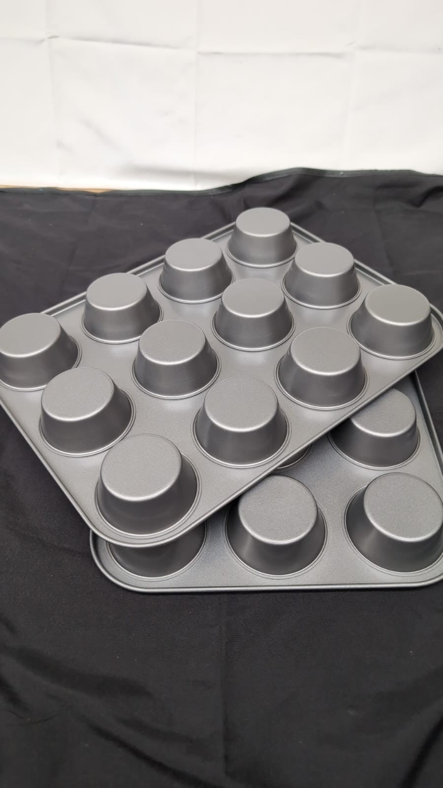 - 2 Pack 12 Cup Large Muffin Pan, Non-Stick Cupcake Tray Baking Mould, Grey