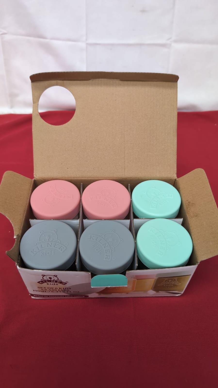 - FULL SET | The set contains six 190 millilitre Kilner Kids Glass Jars, six silicone lids in three different colours