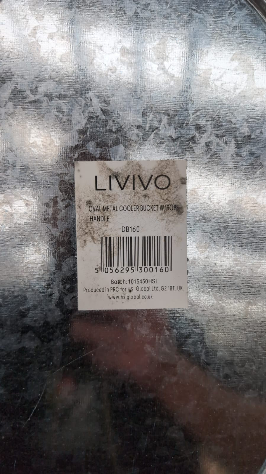 LIVIVO Galvanised Steel 24L Drinks Ice Cool Bucket Pail (slightly scuffed)