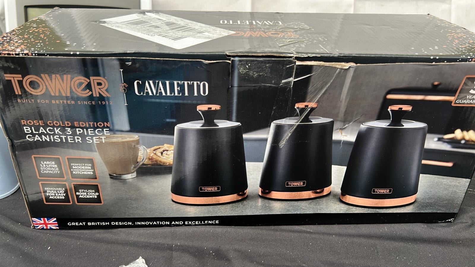 - Tower Cavaletto Set of 3 Storage Canisters ,Black and Rose Gold(USED TO TEST)