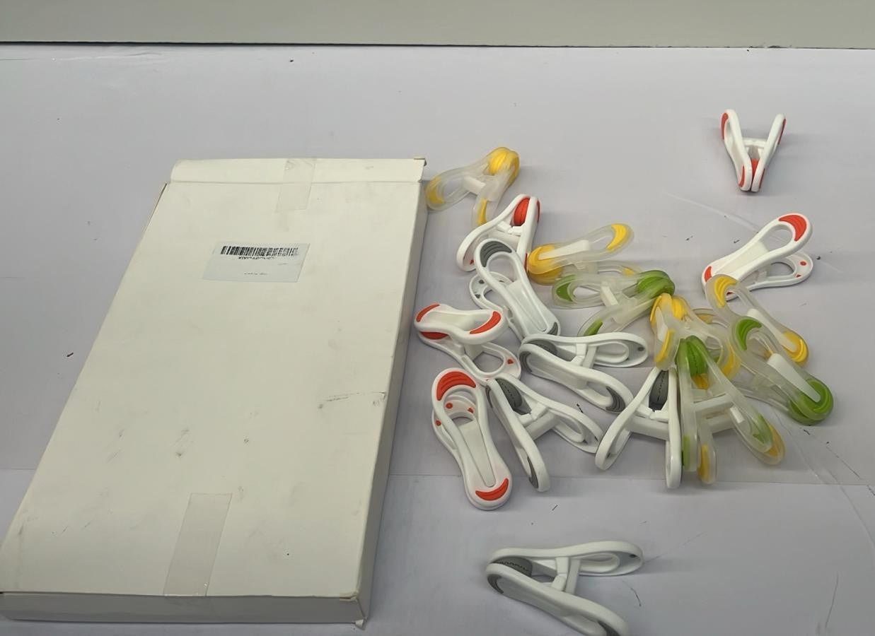 - Strong Grip with No Marks: Soft, cushioned TPR contact surfaces distribute pressure evenly without leaving pin marks on delicate fabrics. The unique slotted‑jaw design ensures a secure hold—even in windy weather—ideal for indoor or outdoor use